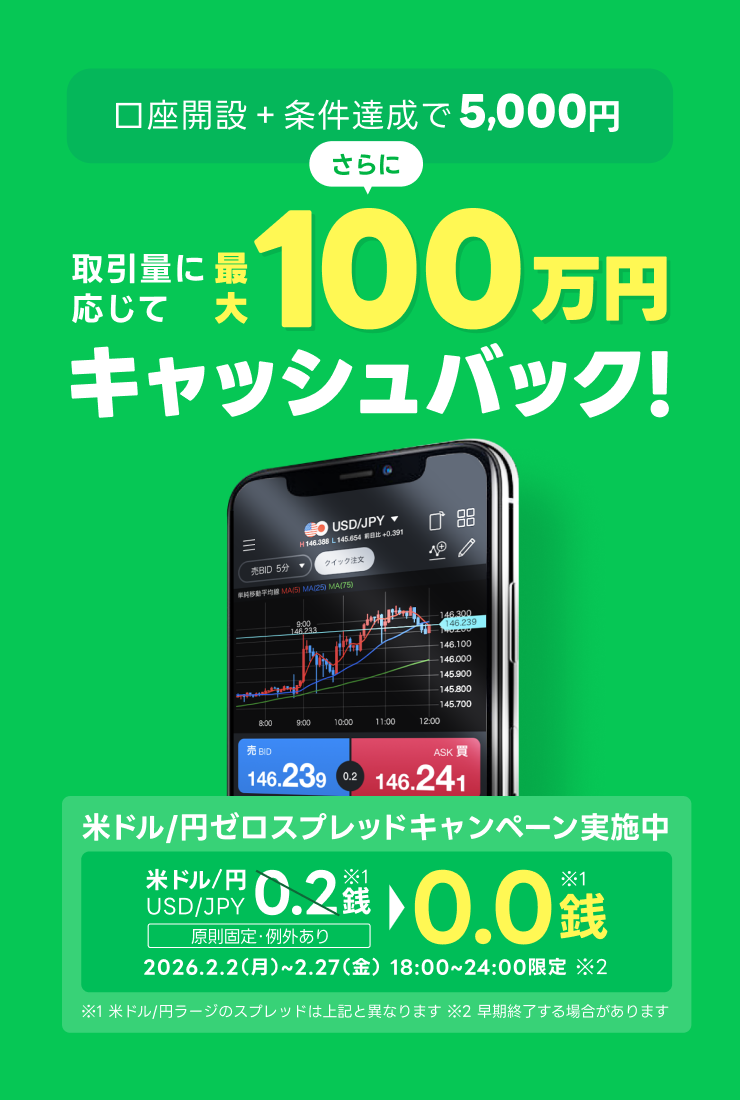 ※USD/JPY、EUR/JPY、GBP/JPY、AUD/JPY、CAD/JPY、MXN/JPY、EUR/USD、AUD/USDのスプレッドについて主要FX取扱業者8社と比較(2026年1月、LINE証券調べ)
