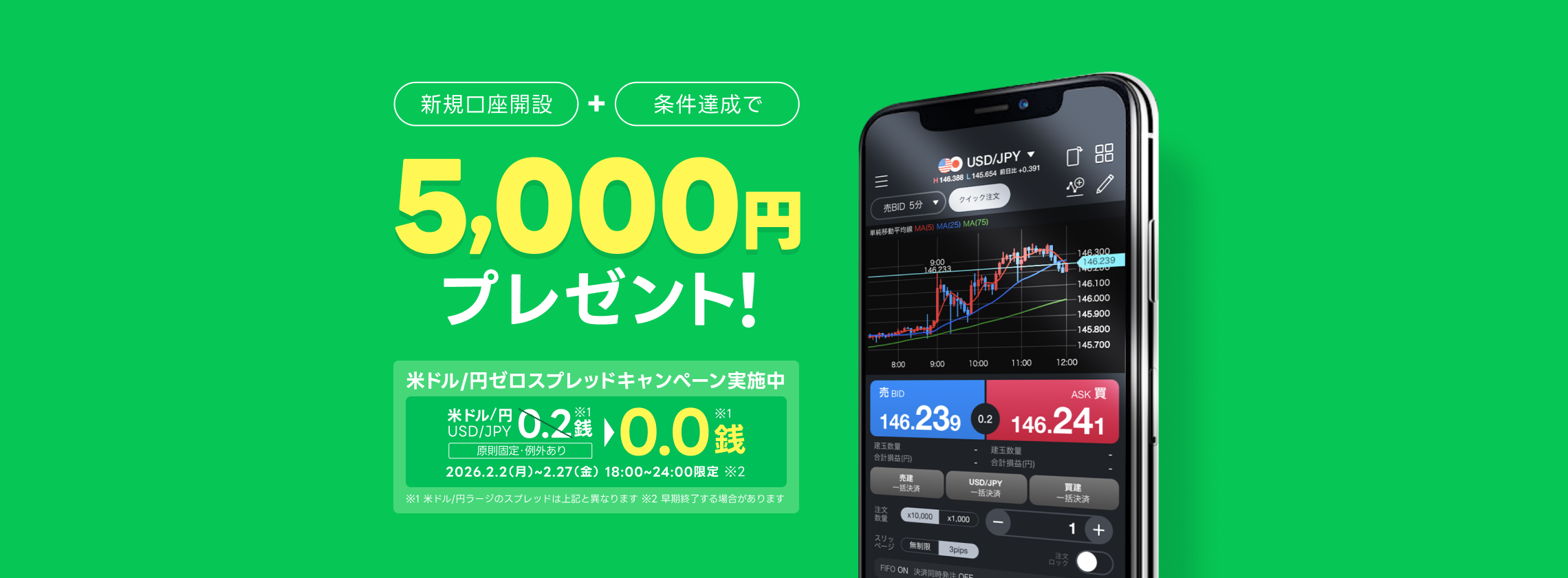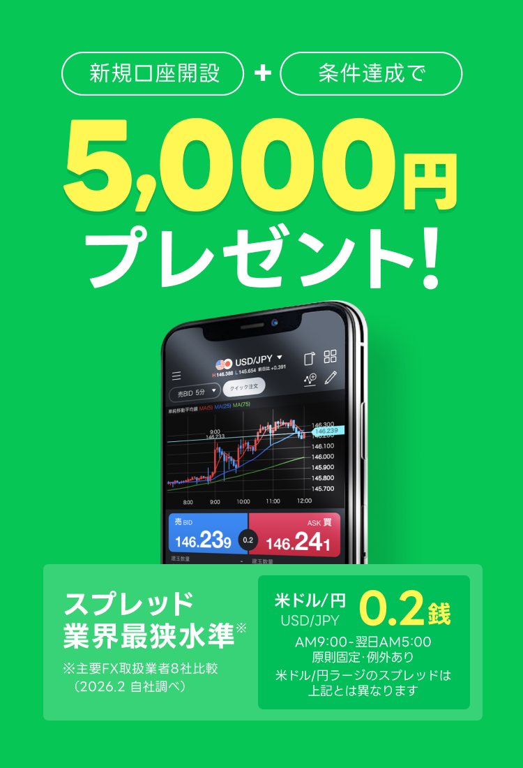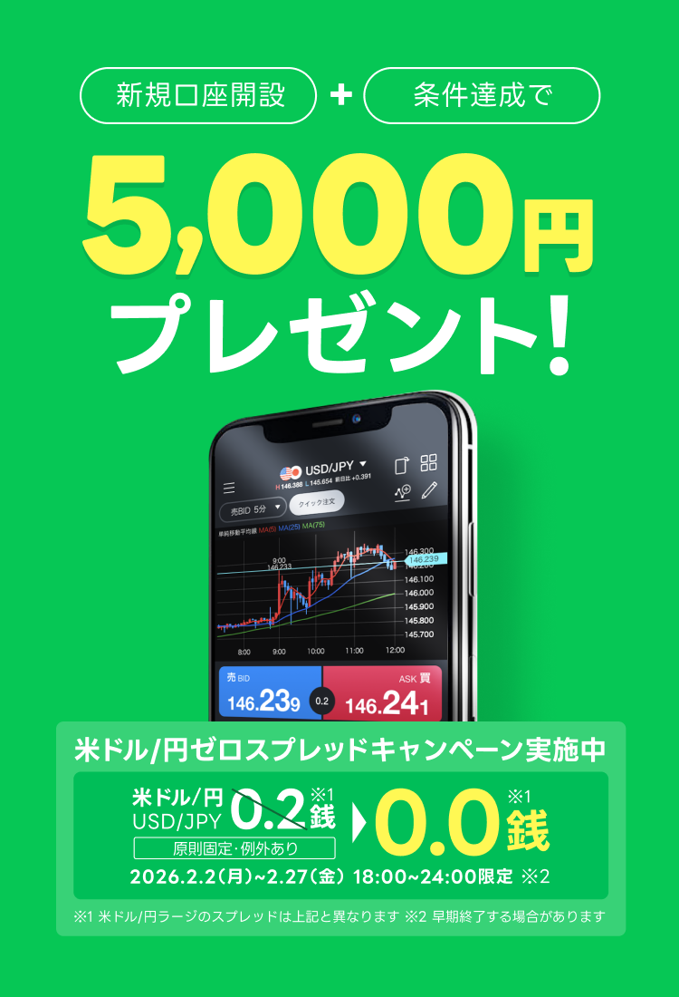 新規口座+条件達成で5,000円プレゼント